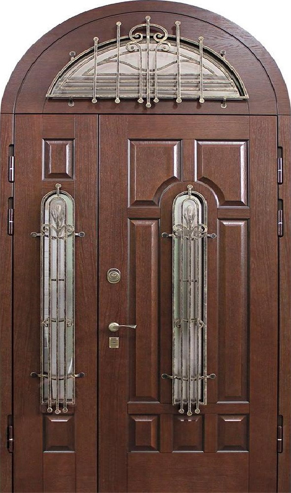 Арочные конструкции всегда придают входу выразительность и особый статус, а если добавить две створки и стеклянные вставки, дверь превращается в центральный элемент фасада. Натуральное дерево в отделке подчеркивает солидность и гармонично сочетается с металлом, из которого выполнено основание: каркас и полотно из профильных труб и стальной лист толщиной 2 мм обеспечивают прочность и долговечность. Для удобства и безопасности используются два замка разного типа — сувальдный и цилиндровый, оба с тремя ригелями, что делает взлом крайне затруднительным. Двухстворчатая арочная дверь со стеклом в частный дом №14 может изготавливаться любого размера и адаптироваться под архитектуру конкретного здания. Возможна установка дополнительных элементов: зеркало, стеклопакет, кованые детали или даже видеодомофон. Резиновое уплотнение по двум контурам защищает от сквозняков, а возможность выбора отделки и фурнитуры открывает простор для индивидуального дизайна. Двухстворчатая арочная дверь со стеклом в частный дом №14 от производителя: быстрое изготовление и монтаж в Киржаче, индивидуальные размеры, широкий выбор материалов и фурнитуры, официальная гарантия до 10 лет.