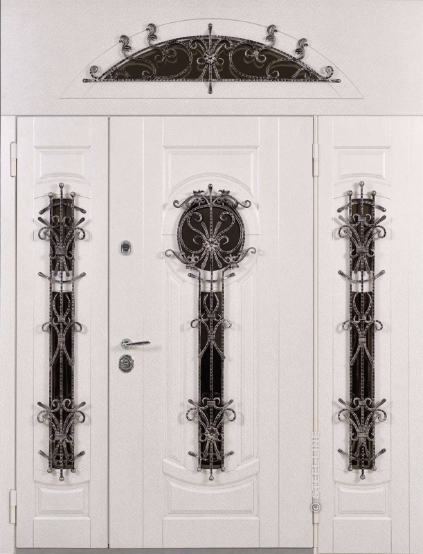 Входная дверь с кованой ручкой и фрамугой №6 представляет собой элегантное и надежное решение для тех, кто ценит не только безопасность, но и стиль. Эта модель идеально подойдет для оформления парадных входов в дома и офисы. Внешняя отделка из плиты МДФ придает двери современный и чистый вид, который сохраняется долго благодаря стойкости к внешним воздействиям. Благодаря профильной трубе с толщиной металла 2 мм и ребрам жесткости, конструкция двери гарантирует прочность и долговечность. Дополнительный элемент — кованая ручка, которая добавляет изысканности и подчеркивает высокий класс изделия. Стандартная комплектация не включает шумо- и теплоизоляцию, однако она может быть установлена по желанию. Резиновый уплотнитель с двумя контурами обеспечит хорошую герметичность, защищая от ветра и пыли. Подходит для установки как в частных домах, так и в офисах, привлекая внимание своим необычным и стильным дизайном. Входная дверь с кованой ручкой и фрамугой №6 от производителя: быстрое изготовление и монтаж в Киржаче, индивидуальные размеры, широкий выбор материалов и фурнитуры, официальная гарантия до 10 лет.