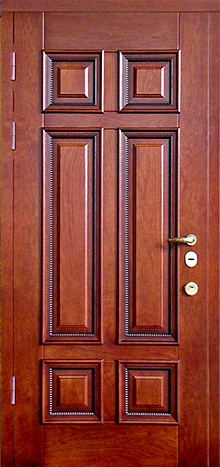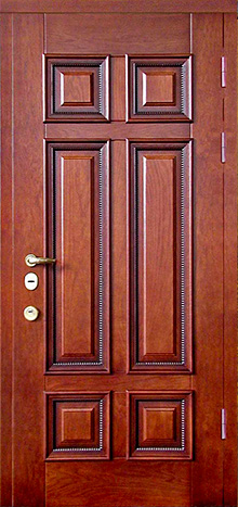 Красивая шпонированная дверь с надежной фурнитурой и ковкой "лоза" №33