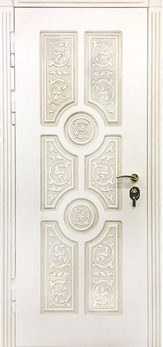 Дверь уличная с терморазрывом №49 — это надежное решение для частных домов и коттеджей, которое обеспечит комфорт и защиту от внешних факторов. С терморазрывом в коробке и полотне, эта дверь исключает проникновение холода, сохраняя тепло в доме и предотвращая появление конденсата. Внешняя и внутренняя отделка выполнена с использованием накладки МДФ, что придает двери привлекательный вид и долговечность, стойкость к механическим повреждениям и атмосферным воздействиям. Ковка, как элемент декора, добавляет изысканности и подчеркивает индивидуальность. Металлическая конструкция с толщиной полотна 1,5 мм и каркасом из профильных труб гарантирует прочность и устойчивость. Уплотнение с тремя контурами магнитного герметика и высокая шумо- и теплоизоляция на основе пенопласта делают дверь идеальной для использования в уличных условиях. Возможность замены замков и добавления стеклопакетов или кованых элементов позволяет индивидуализировать дверное решение под любые потребности. Дверь уличная с терморазрывом №49 от производителя: быстрое изготовление и монтаж в Киржаче, индивидуальные размеры, широкий выбор материалов и фурнитуры, официальная гарантия до 10 лет.