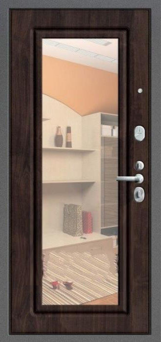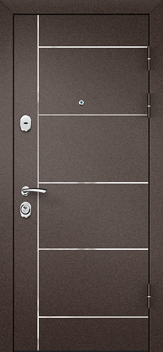 Каркас из профильной трубы и стальной лист толщиной 2 мм обеспечивают прочность конструкции и устойчивость к взлому, а два контура уплотнителей защищают помещение от сквозняков и уличного шума. Входная дверь в квартиру с зеркалом №10 выделяется сочетанием практичного молоткового напыления снаружи и аккуратной плиты МДФ внутри. Такое покрытие не боится механических повреждений и перепадов температуры, долго сохраняя первоначальный вид. Зеркало на внутренней стороне делает прихожую светлее и визуально просторнее, заменяя полноценное настенное. Дополнительные блокираторы и система ребер жёсткости усиливают надежность. Возможность изготовления в любых размерах позволяет адаптировать модель под особенности квартиры, офиса или частного дома, сохранив баланс между эстетикой и безопасностью. Входная дверь в квартиру с зеркалом №10 от производителя: быстрое изготовление и монтаж в Киржаче, индивидуальные размеры, широкий выбор материалов и фурнитуры, официальная гарантия до 10 лет.