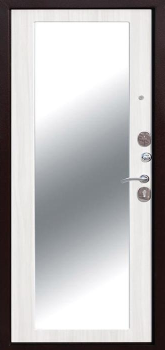 Сдержанный белый цвет придаёт модели лёгкость и визуальную чистоту, а зеркало внутри делает её особенно удобной для городских квартир и офисов, где важна каждая деталь интерьера. Белая входная дверь в квартиру с зеркалом №50 сочетает в себе функциональность и надёжность: прочный стальной каркас из профильной трубы и лист металла толщиной 2 мм обеспечивает защиту, рёбра жёсткости усиливают конструкцию, а два контура уплотнителей помогают снизить проникновение сквозняков и шума. Отделка из МДФ-накладок устойчива к царапинам и не теряет аккуратного вида даже при активной эксплуатации. Зеркальная вставка экономит пространство и делает коридор светлее, а наличие двух замков — сувальдного Просам и цилиндрового Мосрентген — обеспечивает дополнительный уровень безопасности. Белая входная дверь в квартиру с зеркалом №50 от производителя: быстрое изготовление и монтаж в Киржаче, индивидуальные размеры, широкий выбор материалов и фурнитуры, официальная гарантия до 10 лет.