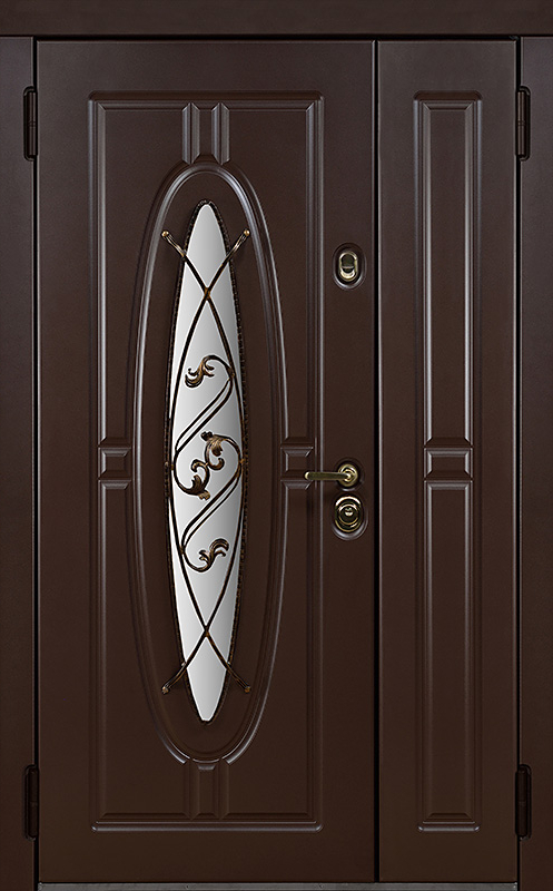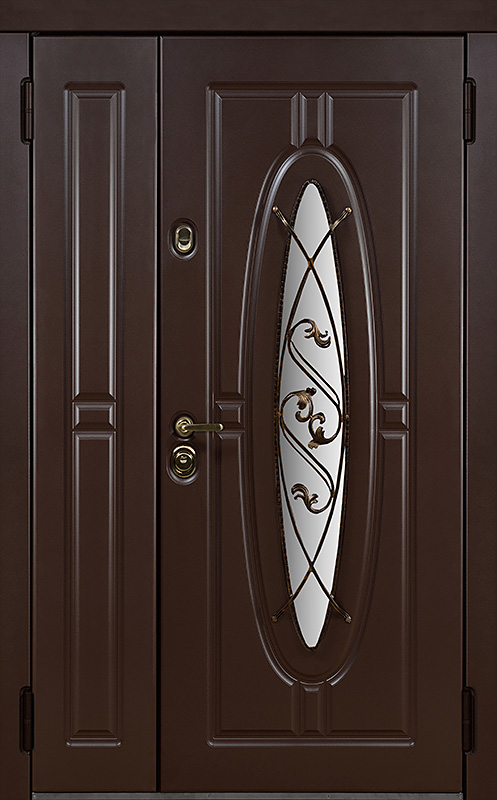 Двойная уличная дверь с овальным стеклом и художественной ковкой №14 — это уникальное сочетание функциональности и эстетики. Панели МДФ с ПВХ-покрытием, используемые как для внешней, так и для внутренней отделки, обладают высокой стойкостью к внешним воздействиям, сохраняя свой внешний вид на долгие годы. Внешний декор в виде художественной ковки придаёт двери особый шарм, подчеркивая её стиль и индивидуальность. Двойная уличная дверь с овальным стеклом и художественной ковкой №14 от производителя: быстрое изготовление и монтаж в Киржаче, индивидуальные размеры, широкий выбор материалов и фурнитуры, официальная гарантия до 10 лет.