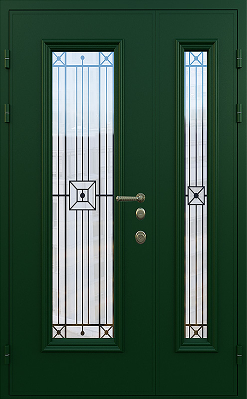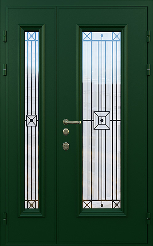 Зеленая полуторная дверь со стеклопакетом для частного дома №18 — это идеальный выбор для тех, кто хочет добавить в свой дом надежность и стиль. Элементы декора, такие как багет и ковка, придают двери элегантный вид, который идеально гармонирует с фасадом загородного дома. Панели МДФ с ПВХ-покрытием, использованные для внешней и внутренней отделки, обеспечивают высокую стойкость к механическим повреждениям и внешним воздействиям, сохраняя прекрасный внешний вид на долгое время. Зеленая полуторная дверь со стеклопакетом для частного дома №18 от производителя: быстрое изготовление и монтаж в Киржаче, индивидуальные размеры, широкий выбор материалов и фурнитуры, официальная гарантия до 10 лет.