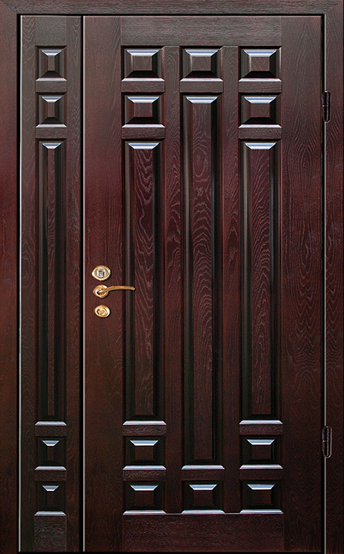 Эта двухстворчатая парадная дверь с объемной фрезеровкой №3 станет отличным акцентом в любом интерьере, добавив элегантности и солидности. Внешняя и внутренняя отделка из натурального дерева придает двери натуральный и стильный вид, который легко впишется как в классические, так и современные дизайны. Прочная конструкция двери с каркасом из профильной трубы 50х25 мм и листом металла толщиной 2 мм гарантирует долговечность и защиту. Ребра жесткости из профильных труб 40х25 мм повышают ее устойчивость к нагрузкам. Замки "Просам" и "Мосрентген" с тремя ригелями обеспечивают надежную защиту. Возможность выбора отделки и установки дополнительных элементов, таких как зеркало, стеклопакет или кованые детали, позволяет сделать дверь уникальной и подходящей под любые требования. Терморазрыв полотна и коробки способствует улучшению теплоизоляции. Вдобавок можно оснастить дверь современными замками и видеодомофоном для дополнительного комфорта и безопасности. Парадная двухстворчатая дверь с объемной фрезеровкой №3 от производителя: быстрое изготовление и монтаж в Киржаче, индивидуальные размеры, широкий выбор материалов и фурнитуры, официальная гарантия до 10 лет.