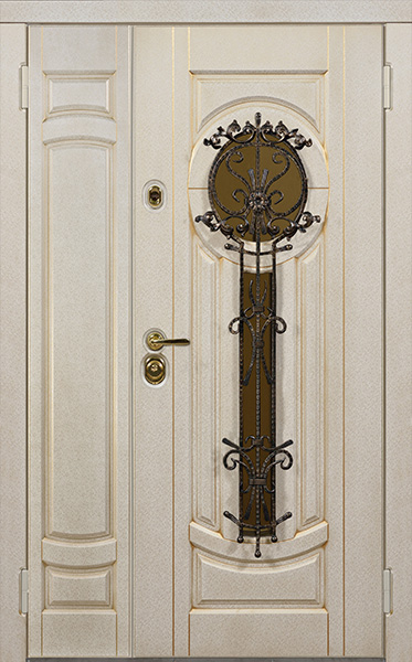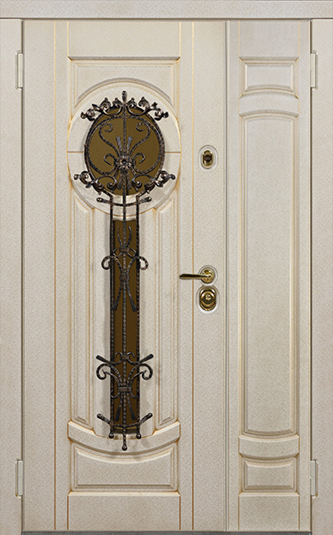 Двухстворчатая парадная дверь с ковкой и стеклом белая №30 — это сочетание красоты и надёжности. Конструкция из профильной трубы 50х25 мм и металлического листа толщиной 2 мм обеспечивает долговечность и стойкость к внешним воздействиям. Элементы ковки придают двери изысканный вид, а стеклопакет позволяет создать атмосферу лёгкости и прозрачности. Внешняя и внутренняя отделка выполнены из плиты МДФ, что делает дверь не только привлекательной, но и устойчивой к механическим повреждениям. Для дополнительной герметичности используются уплотнители с двумя контурами, а блокираторы обеспечат безопасность. Вариативность размеров и возможность добавления дополнительных опций, таких как шумо- и теплоизоляция, делают эту модель универсальной для установки в любом интерьере. Двухстворчатая парадная дверь с ковкой и стеклом белая №30 от производителя: быстрое изготовление и монтаж в Киржаче, индивидуальные размеры, широкий выбор материалов и фурнитуры, официальная гарантия до 10 лет.