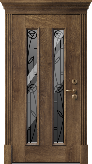 Надежность и эстетика в одной конструкции — именно так можно описать входную дверь с ковкой и стеклом №12. Она рассчитана на установку в частных домах и коттеджах, где важно подчеркнуть не только защиту, но и выразительный облик фасада. Основа выполнена из стали толщиной 2 мм с усилением профильными трубами и ребрами жесткости, что гарантирует прочность и долговечность. Два контура уплотнителя создают плотное прилегание, снижая уровень уличного шума и препятствуя проникновению влаги. Наружная и внутренняя отделка выполнена плитами МДФ, материал устойчив к царапинам и перепадам температуры, сохраняя аккуратный вид долгие годы. Особую роль играют стеклянные вставки и изящные кованые элементы, превращающие дверь в декоративный акцент парадного входа. За безопасность отвечают замки Kale Kilit с разными системами запирания, которые при желании можно заменить на другие модели, включая современные электронные варианты. Входная дверь с ковкой и стеклом №12 от производителя: быстрое изготовление и монтаж в Киржаче, индивидуальные размеры, широкий выбор материалов и фурнитуры, официальная гарантия до 10 лет.