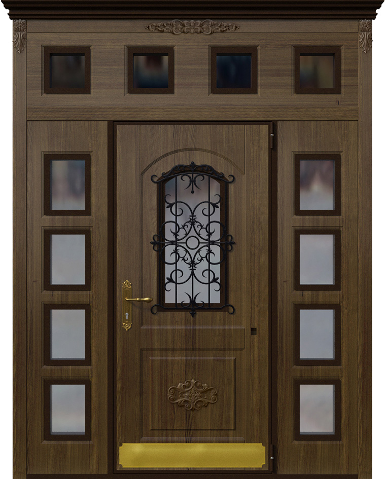 Эта модель выделяется своим масштабом и декоративностью: двухстворчатая дверь со вставками и ковкой №2 подчеркивает парадность входа и придает фасаду респектабельность. Основу составляет прочный каркас из стальных профильных труб с листом металла толщиной 2 мм и ребрами жесткости, что обеспечивает долговечность и защиту. Снаружи и внутри полотно облицовано накладками МДФ, которые позволяют воплотить различные варианты текстур и оттенков, сохраняя устойчивость к механическим повреждениям и влиянию внешней среды. Кованые элементы вносят в образ двери нотку изысканности и индивидуальности, делая ее центральным акцентом всего фасада. Для безопасности предусмотрены два замка турецкого производителя Kale Kilit — цилиндровый и сувальдный, каждый с ригелями, усиливающими защиту. Такая дверь сочетает надежность металлической конструкции с эстетикой классического дизайна, превращая вход в настоящий архитектурный акцент. Двухстворчатая дверь со вставками и ковкой №2 от производителя: быстрое изготовление и монтаж в Киржаче, индивидуальные размеры, широкий выбор материалов и фурнитуры, официальная гарантия до 10 лет.