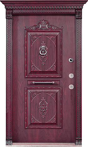 Красивая шпонированная дверь с надежной фурнитурой и ковкой "лоза" №33