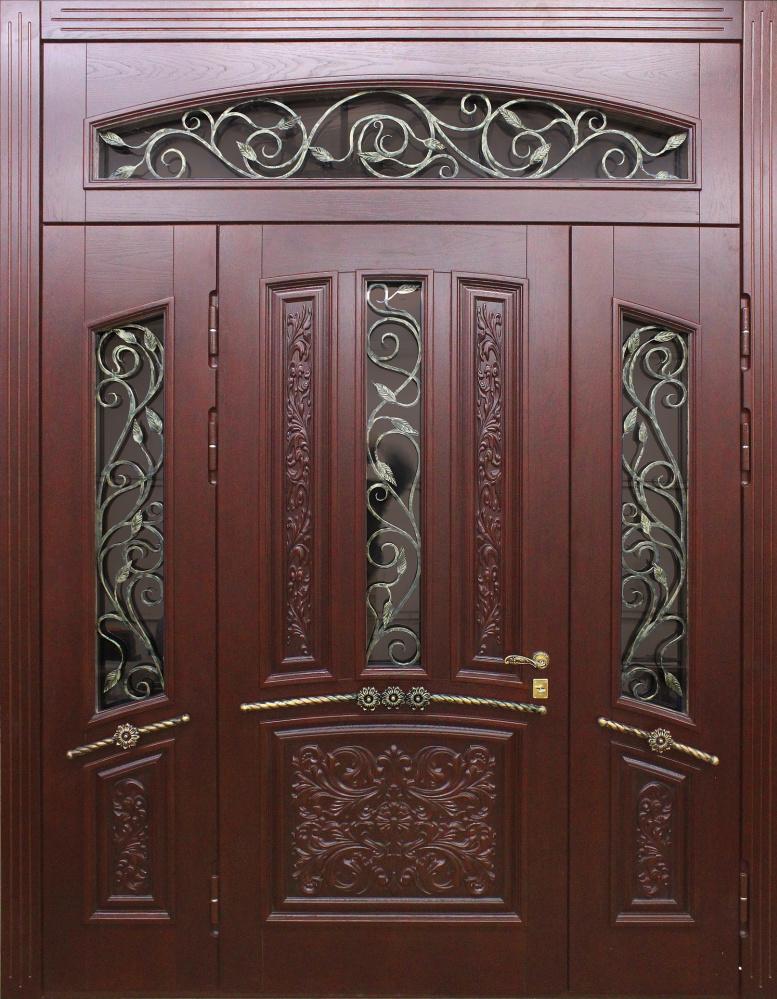 Большая входная дверь в частный дом со стеклом №328 создана для тех, кто ценит солидность и выразительный облик парадного входа. Широкое полотно на основе стальной конструкции с профилем 50х25 мм и листом металла толщиной 2 мм обеспечивает надежность и устойчивость к нагрузкам, а массив дуба в отделке придает дверному блоку статусный вид и долговечность. Натуральное дерево отличается стойкостью к повреждениям и долго сохраняет свой первозданный оттенок, что особенно важно для фасадных решений. Вставка из стекла добавляет естественного света в холл и делает интерьер более гостеприимным. Двойной контур резинового уплотнителя защищает от сквозняков, а наличие блокираторов повышает уровень безопасности. Такая дверь гармонично смотрится в коттеджах и частных домах, где парадный вход становится главным акцентом архитектуры. Большая входная дверь в частный дом со стеклом №328 от производителя: быстрое изготовление и монтаж в Киржаче, индивидуальные размеры, широкий выбор материалов и фурнитуры, официальная гарантия до 10 лет.