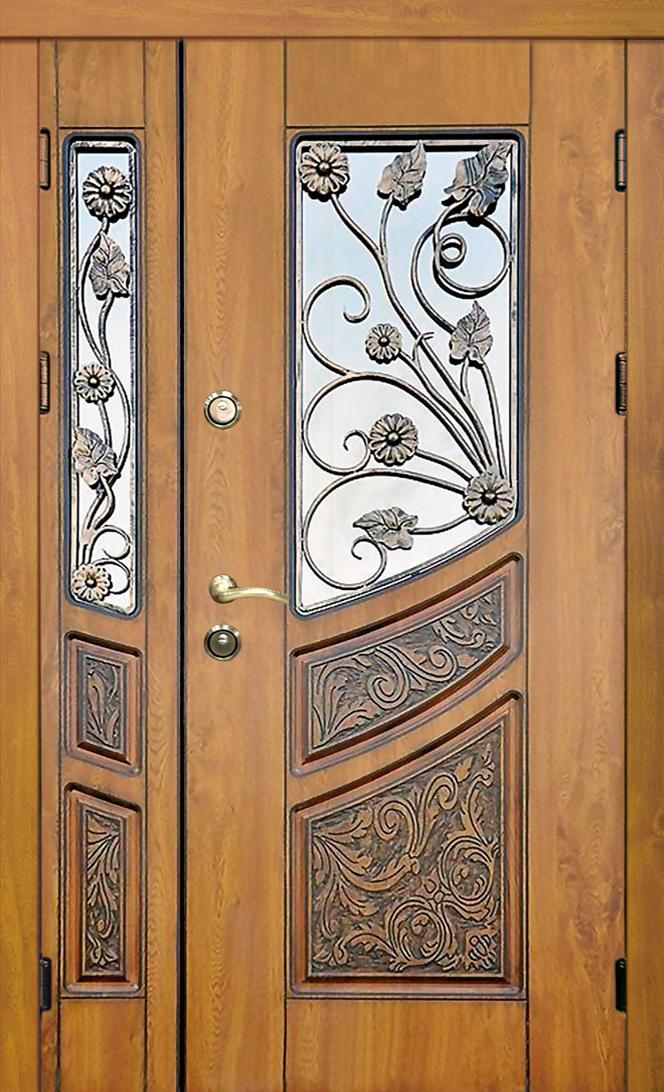 Дверь со стеклопакетом входная №411 создана для тех, кто ценит надежность и одновременно хочет подчеркнуть стиль фасада своего дома. Прочный стальной каркас из профильной трубы с листом металла толщиной 2 мм и системой ребер жесткости гарантирует долговечность и защиту от внешних воздействий. Панели из натурального дерева с обеих сторон придают полотну благородный облик, устойчивый к царапинам и погодным перепадам, сохраняя первоначальный вид долгие годы. Стеклопакет не только украшает дверь, но и наполняет прихожую естественным светом, создавая уют и ощущение открытости. Два контура уплотнителей предотвращают сквозняки и влагу, а встроенные блокираторы усиливают защитные функции. Такая модель удачно совмещает декоративность и практичность, делая парадный вход в коттедж или частный дом одновременно безопасным и выразительным. Дверь со стеклопакетом входная №411 от производителя: быстрое изготовление и монтаж в Киржаче, индивидуальные размеры, широкий выбор материалов и фурнитуры, официальная гарантия до 10 лет.