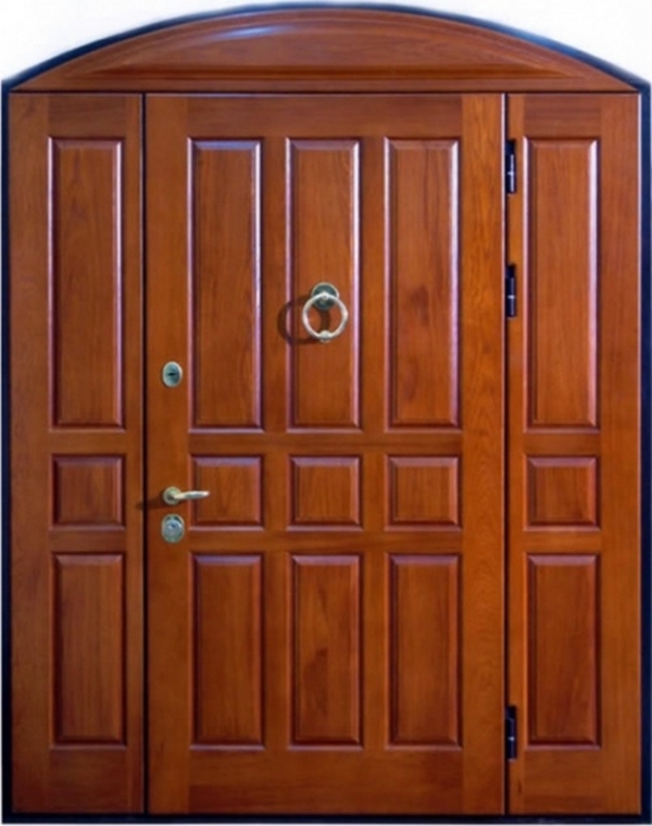 Входная металлическая дверь с порошковым покрытием стеклом и ковкой в частный дом №27