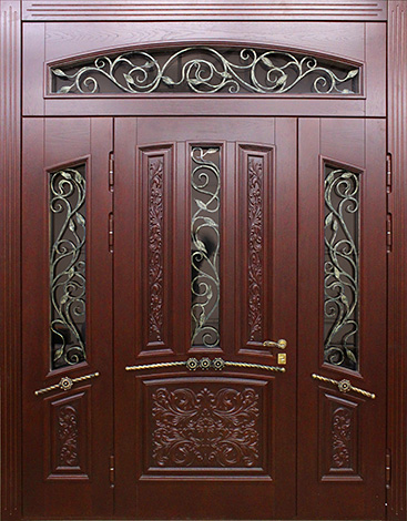 Эта модель создана для тех, кто ценит солидность и внушительный внешний вид парадного входа. Натуральный массив дуба в отделке придаёт дверному полотну статусный характер, а стеклянные вставки позволяют добавить света и лёгкости фасаду дома. При этом основа конструкции выполнена из прочной профильной трубы с использованием листа металла толщиной 2 мм и ребер жёсткости, что гарантирует надёжность и устойчивость к взлому. Двустворчатая входная дверь со стеклом №39 удобна для широких проёмов коттеджей и частных домов, обеспечивая не только безопасность, но и удобство при внесении крупногабаритной мебели. Итальянские замки Cisa сочетают в себе высокий класс защиты и плавность хода механизма, а наличие двух контуров уплотнения дополнительно защищает от сквозняков. Возможность комбинировать отделку, добавить зеркало, витраж или кованые элементы делает модель гибкой для индивидуального дизайна и подчеркивает её представительский статус. Двустворчатая входная дверь со стеклом №39 от производителя: быстрое изготовление и монтаж в Киржаче, индивидуальные размеры, широкий выбор материалов и фурнитуры, официальная гарантия до 10 лет.