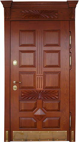 Эксклюзивная высокая входная дверь с железным отбойником №36 — это образец элегантности и функциональности, который идеально впишется в любой частный дом или коттедж. Изготовленная из массива дерева, она будет долго сохранять свой привлекательный внешний вид и устойчивость к внешним воздействиям. Прочная конструкция из профильных труб и листа металла толщиной 2 мм, усиленная ребрами жесткости, гарантирует надежность и долговечность. Терморазрыв в коробке и полотне помогает минимизировать теплопотери и защищает от перепадов температуры. Дверь оснащена высококачественными замками, что обеспечивает высокий уровень безопасности. Железный отбойник добавляет двери не только дополнительную защиту, но и стильный элемент дизайна. Эксклюзивная высокая входная дверь с железным отбойником №36 от производителя: быстрое изготовление и монтаж в Киржаче, индивидуальные размеры, широкий выбор материалов и фурнитуры, официальная гарантия до 10 лет.